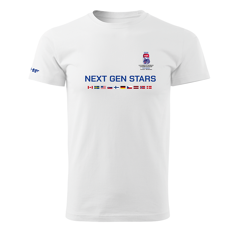 Fanúšikovské tričko s dizajnom k šampionátu 2026 IIHF Majstrovstvá sveta hráčov do 18 rokov.
